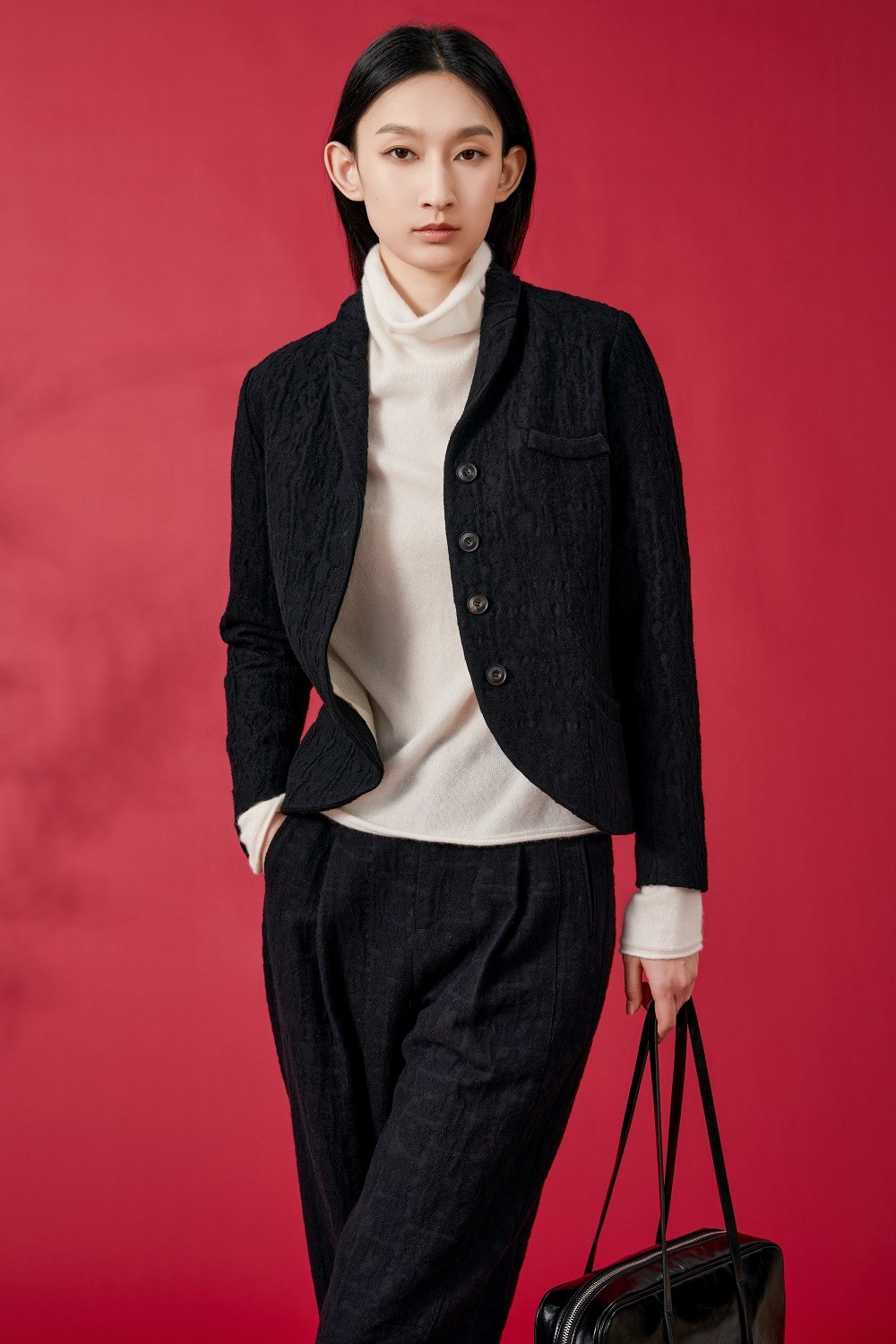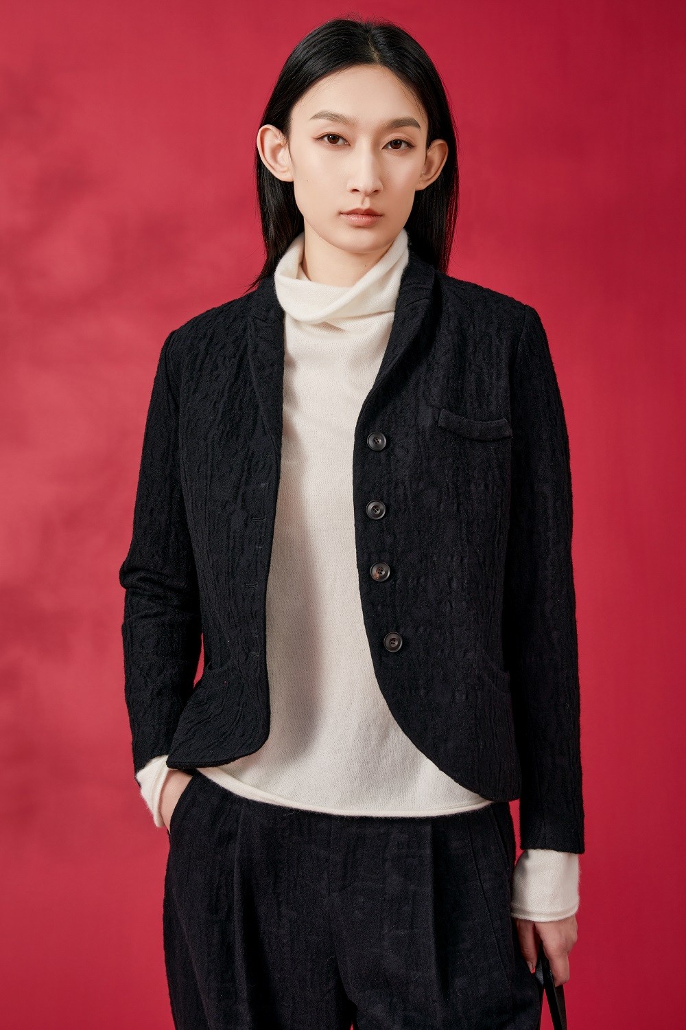 外套:Z231FI0312-K22 內(nèi)搭:Z231FD1125-W01 褲子:Z231FI0824-K22