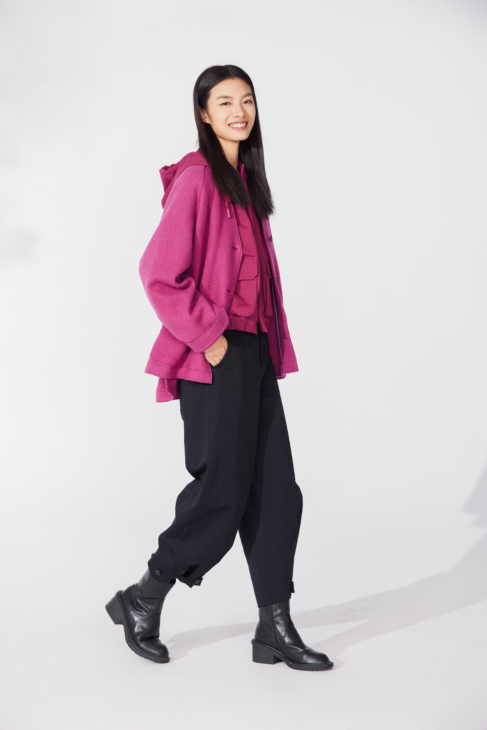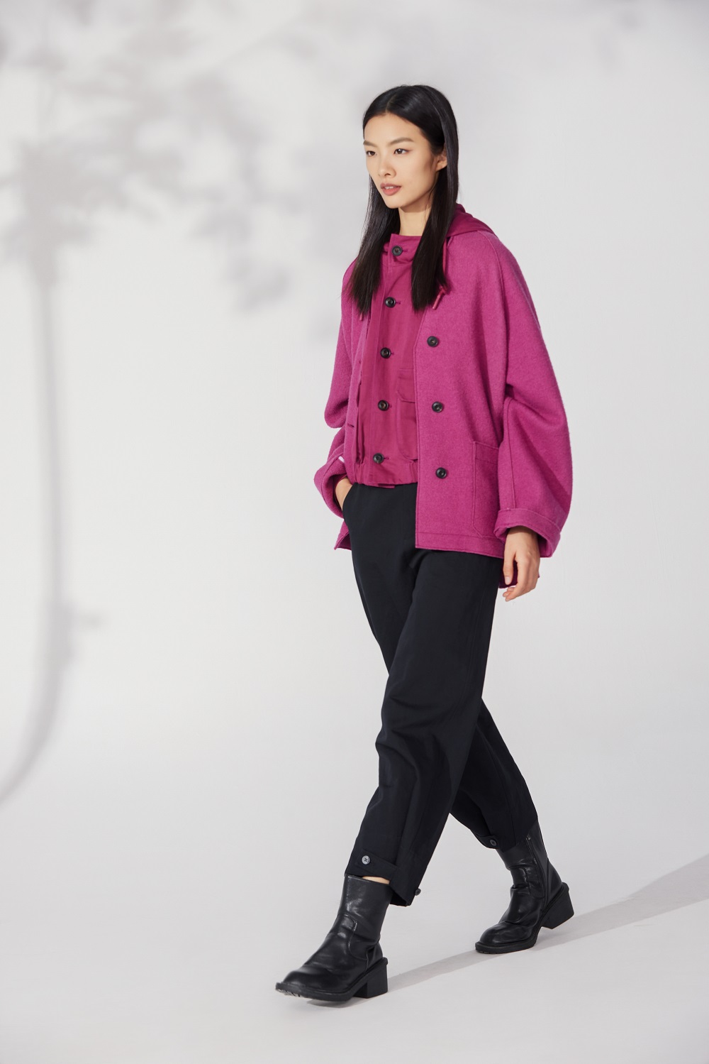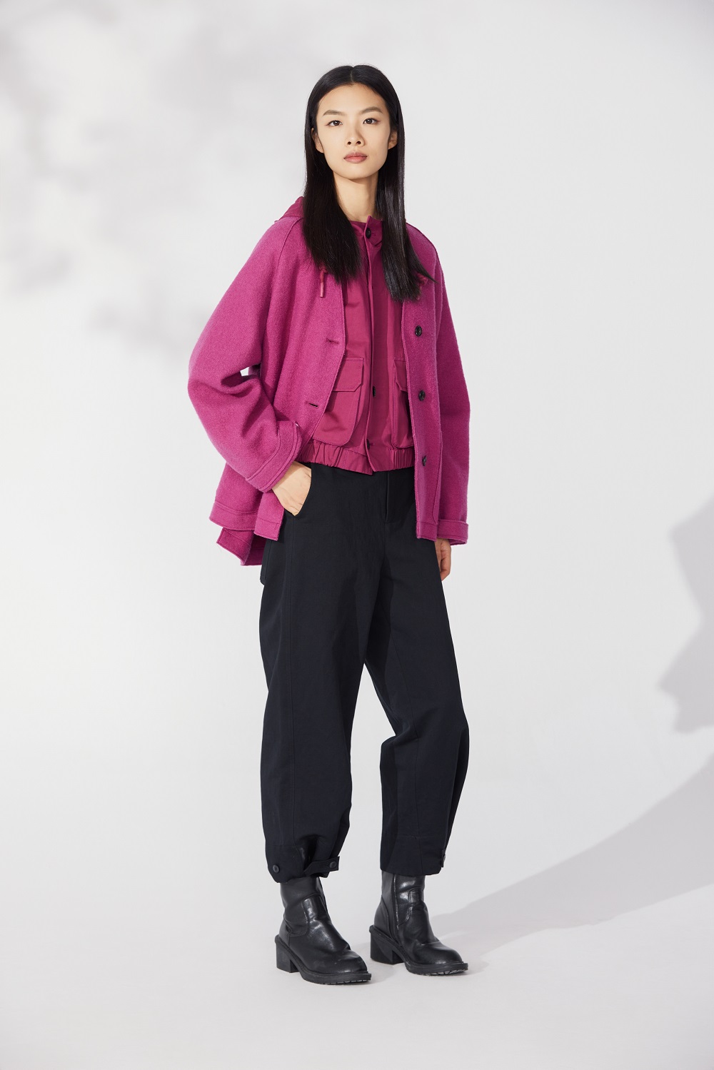 外套:Z241SA0406 內(nèi)搭:Z241SA0501褲子:Z241SA0801