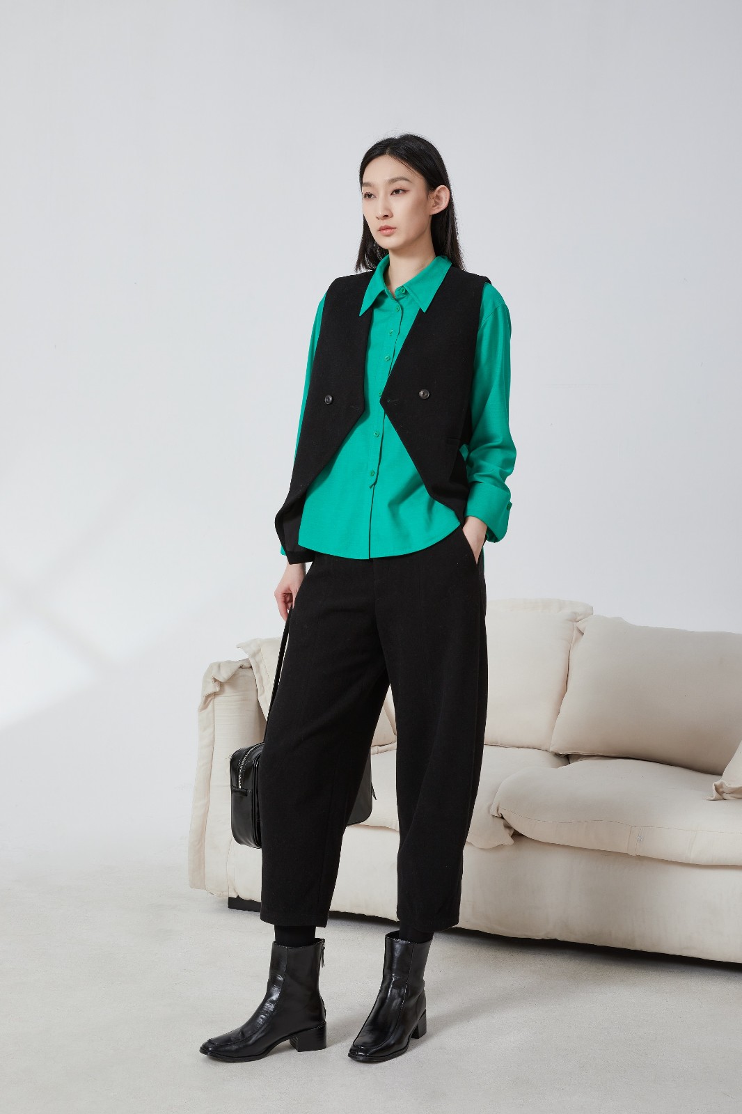 馬甲:Z231FF1403-K22 內(nèi)搭:Z231FH0622-G23 褲子:Z231FH0823-K22