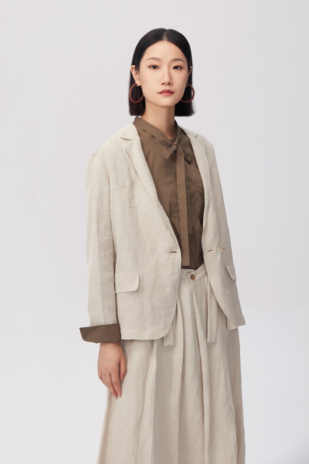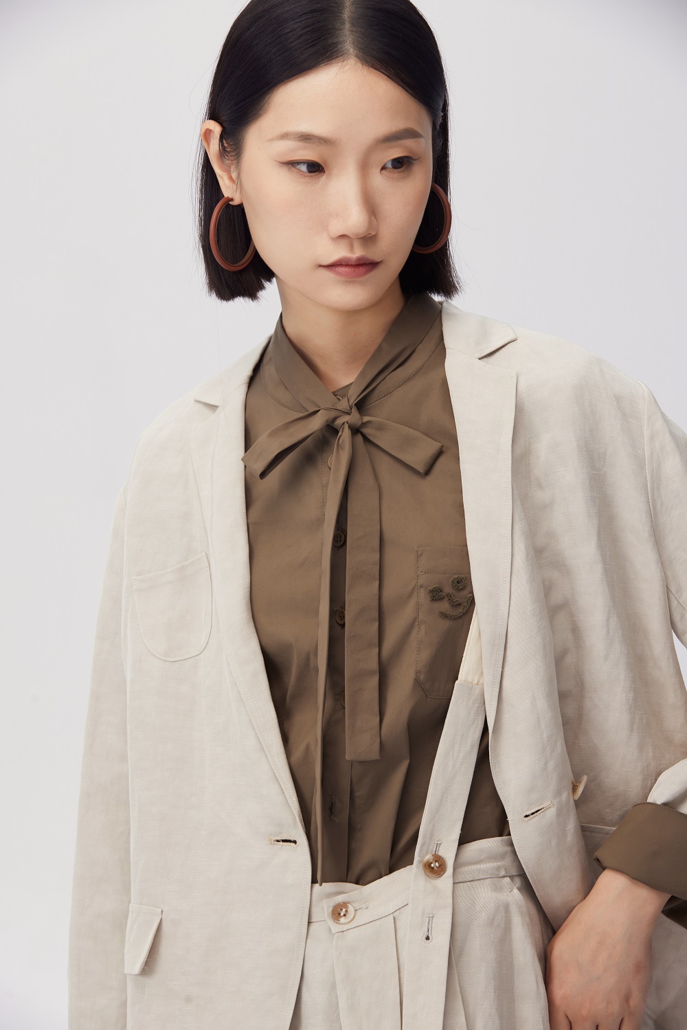 外套:Z241SB0303 內(nèi)搭:Z241SB0606 背帶裙:Z241SB0704